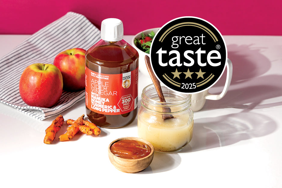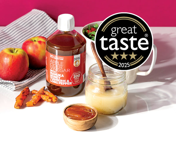 The human gut contains a large number of microorganisms including bacteria known as the gut microbiota, and these microorganisms are important for our overall digestive health [1]. Like other fermented foods such as yoghurt, our raw unfiltered range of ACV can be considered a probiotic as it contains healthy bacteria which help to maintain a healthy gut microbiome, and is particularly beneficial as apples contain pectin which has been shown to aid digestion [2,3].
