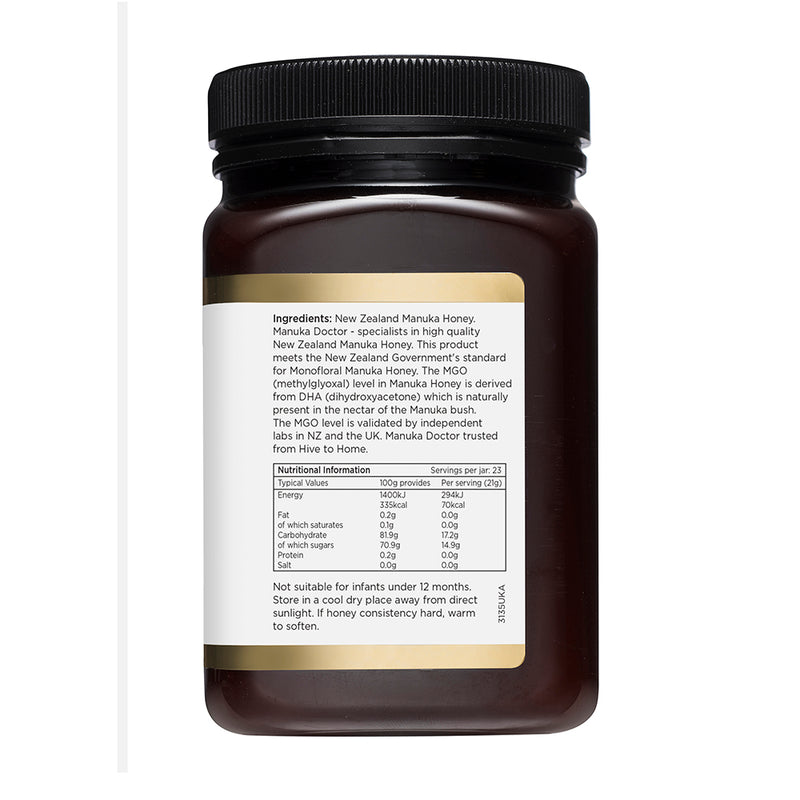 Certified raw Manuka Honey: Manuka Doctor is the only honey brand in the world to hold independent R.A.W. certification. This guarantees minimal processing and no excessive heat - preserving the natural enzymes, pollen, and nutrients just as nature intended.