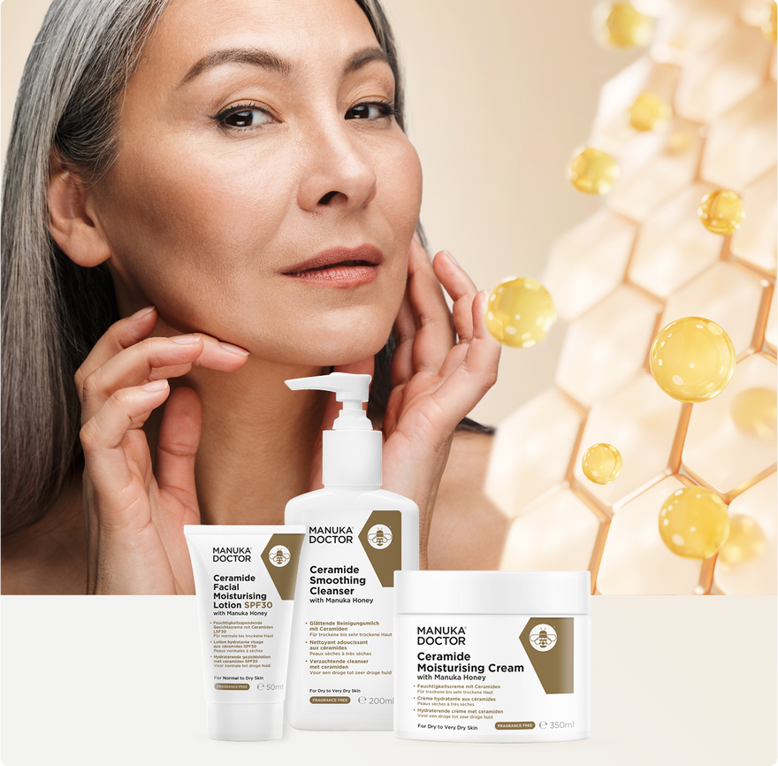 The NEW Manuka Doctor Ceramide skincare range features 3 essential ceramides plus moisturising Manuka honey to keep your skin barrier healthy and protected for a smoother looking complexion.