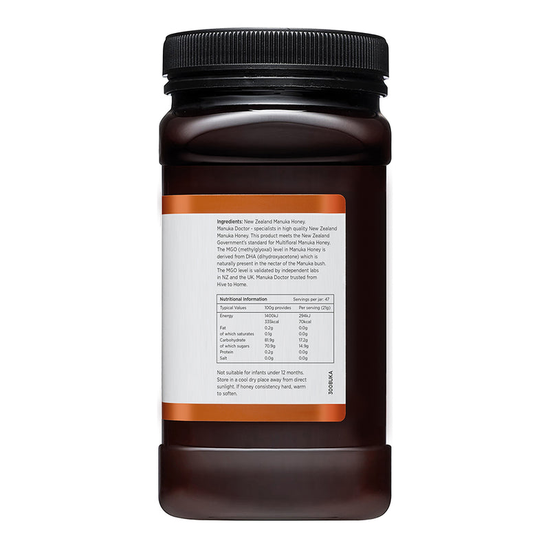 Manuka honey contains high levels of a key natural compound called Methylglyoxal (or MGO for short). MGO has special anti-bacterial properties, which means it can kill bad bugs and bacteria. It’s what sets Manuka apart from other honeys and makes it such a powerful choice for natural wellness. The higher the MGO number, the greater the concentration of this beneficial compound – and the stronger the honey’s activity. The amount of MGO contained is written on the front of every pot and is expressed as mg per kg. So a 100 MGO Manuka honey will contain at least 100 milligrams of Methylglyoxal per Kilogram.
